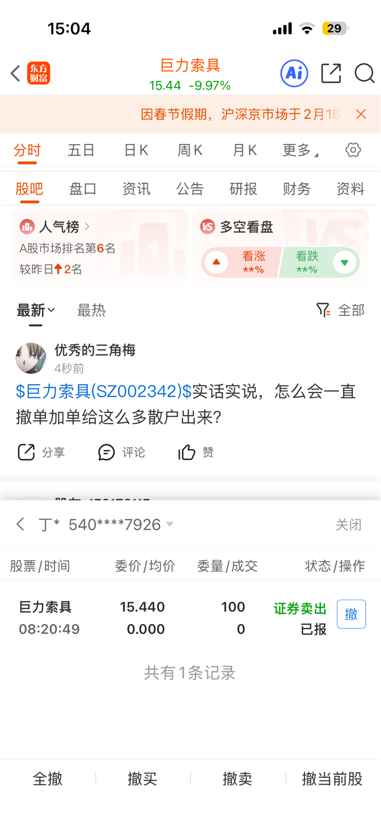 $巨力索具(SZ002342)$ 我怕你个鸡毛!有种退市