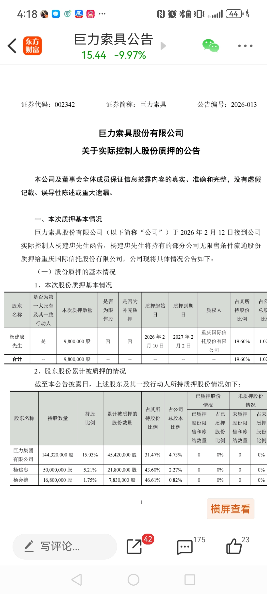 $巨力索具(SZ002342)$ 虽然我跳水前清仓了,不过看实控人质押的时间点(跳水前一天),这个董秘明显涉嫌误导性陈述了,之前董秘回复股东的都是商业航天这个有,那个有的,连最热门的捕捉臂都有,等实控人高位质押套现完了后,才澄清25年订单连1000万都没有