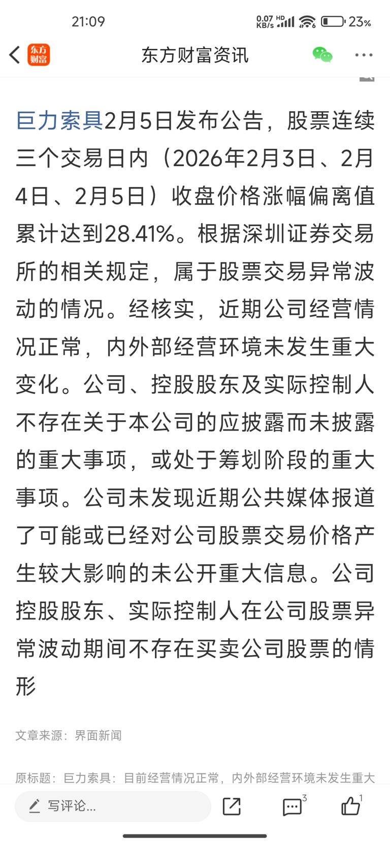 认赌服输很正常,但对方出老千就坚决不能忍!2月5日巨力索具公告内容中还声称不存在