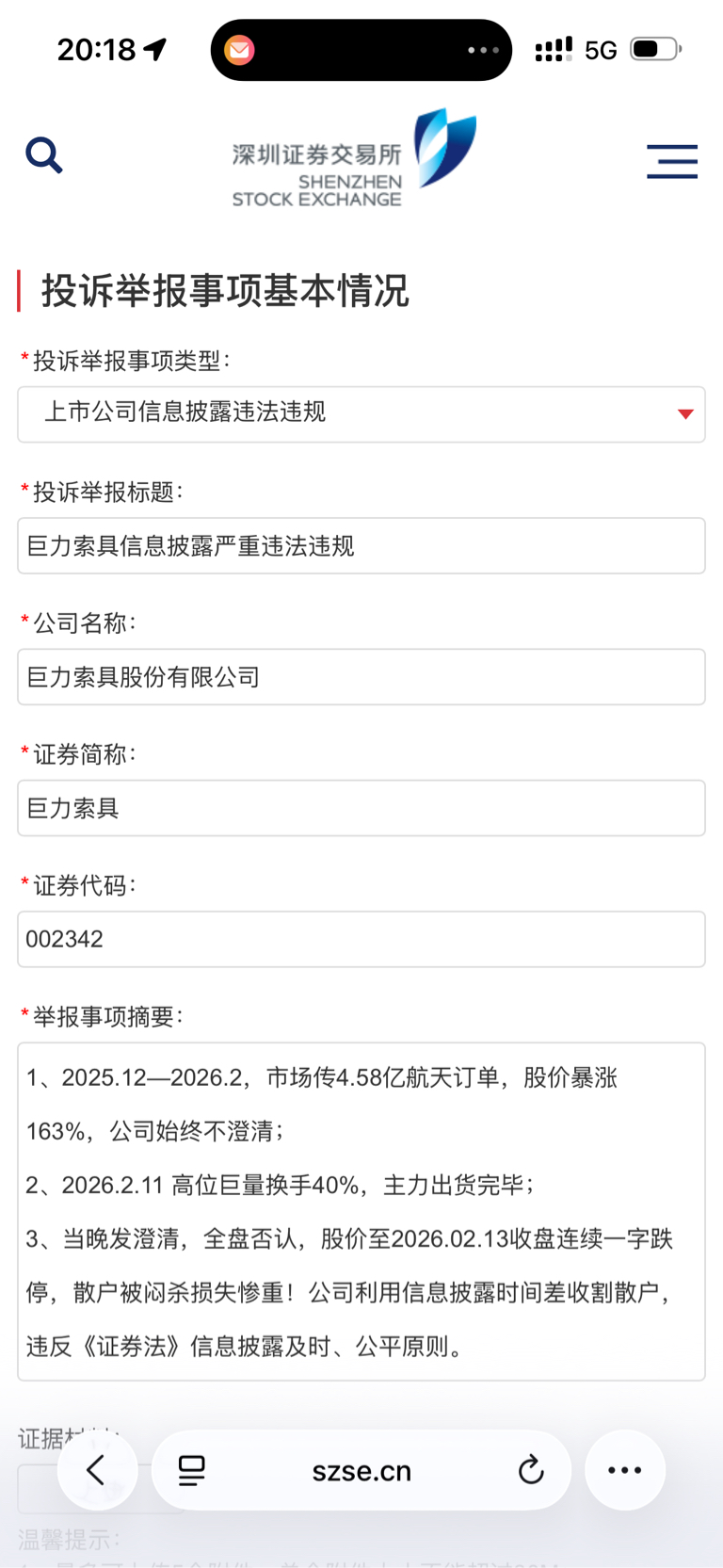 $巨力索具(SZ002342)$ 认赌服输很正常,但对方出老千就坚决不能忍!2月5日巨力索具公告内容中还声称不存在应披露而未披露的重大事项,与2月11日公告内容的天壤之bie!坚决举报LJ公司直至退市!