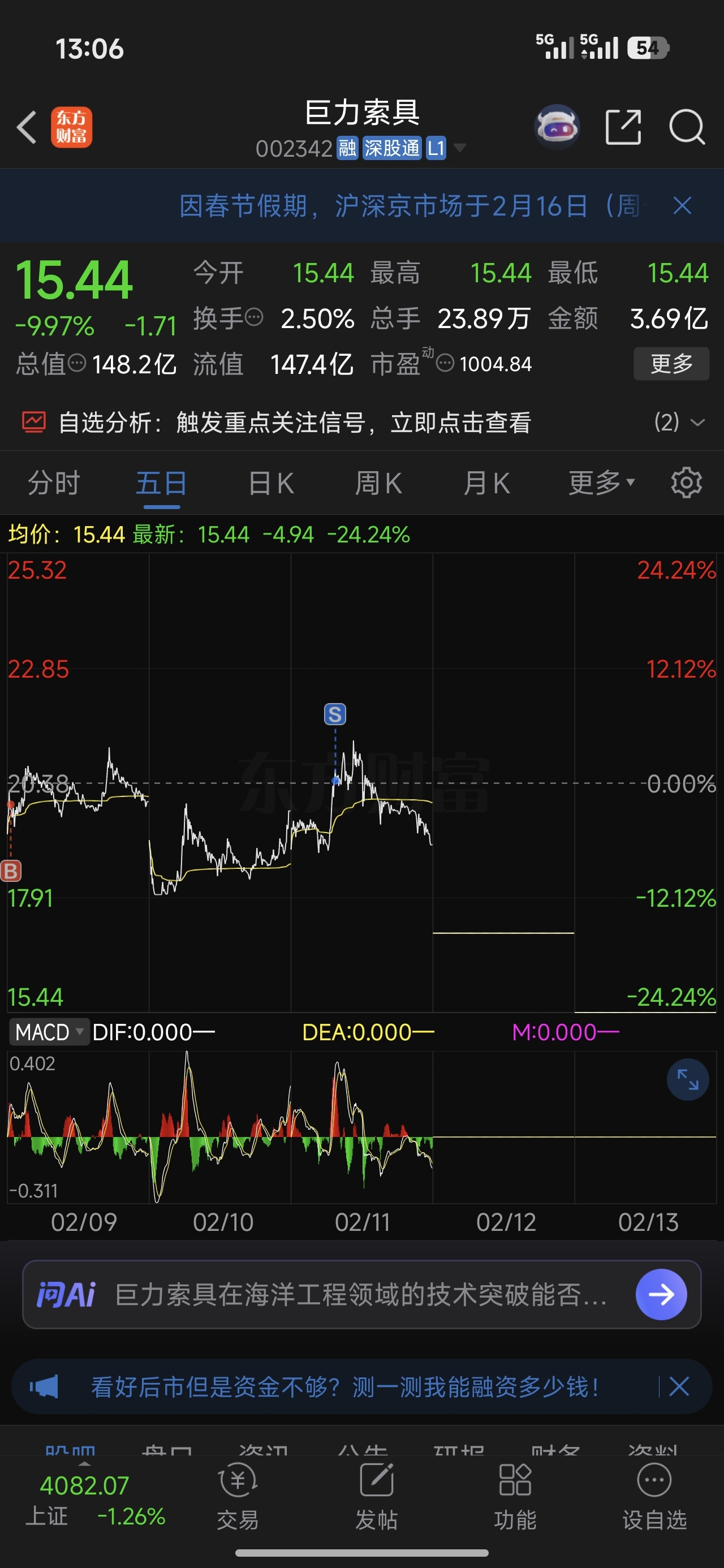 $巨力索具(SZ002342)$ 赚了6600,跑的刚刚好,差点被埋了