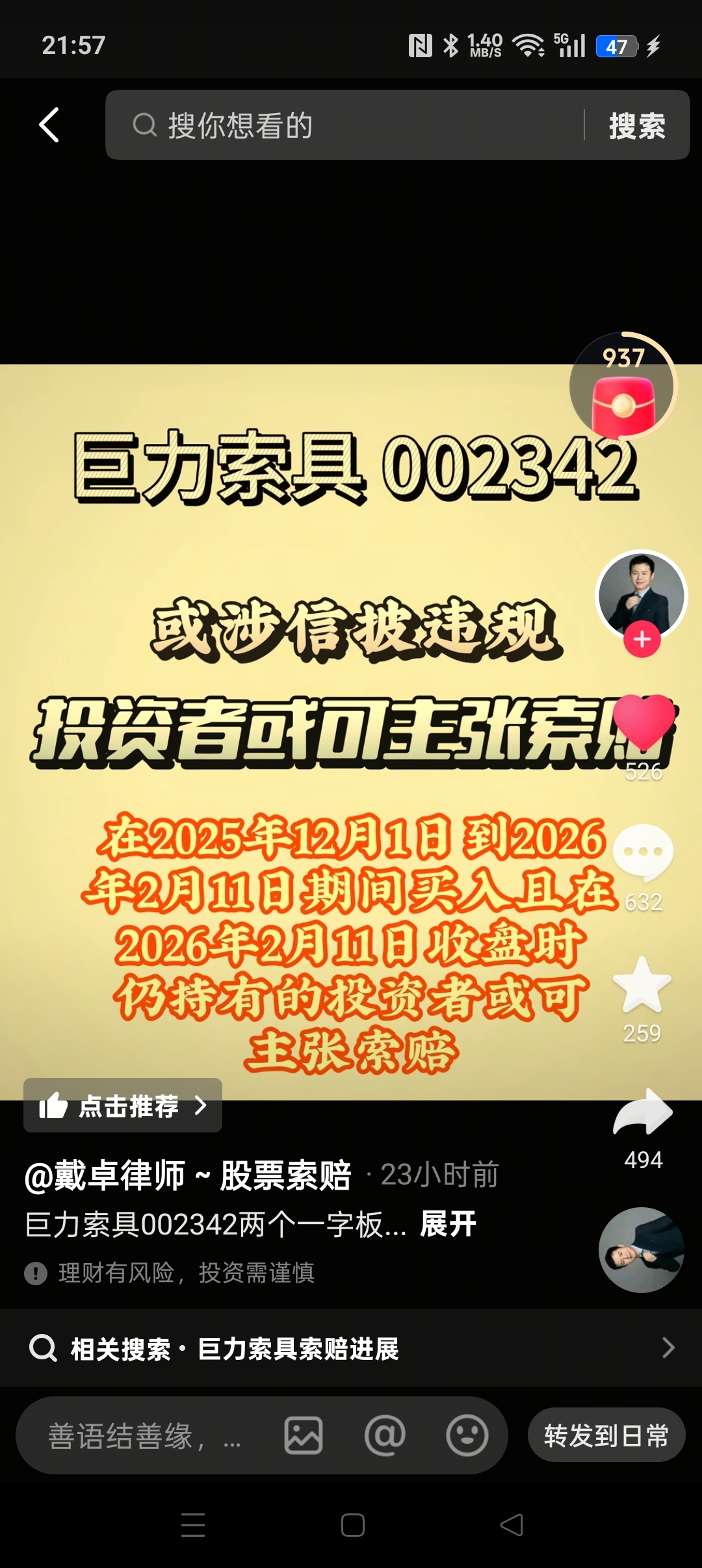 $巨力索具(SZ002342)$ 不是说可以申请赔了吗,是不是真的