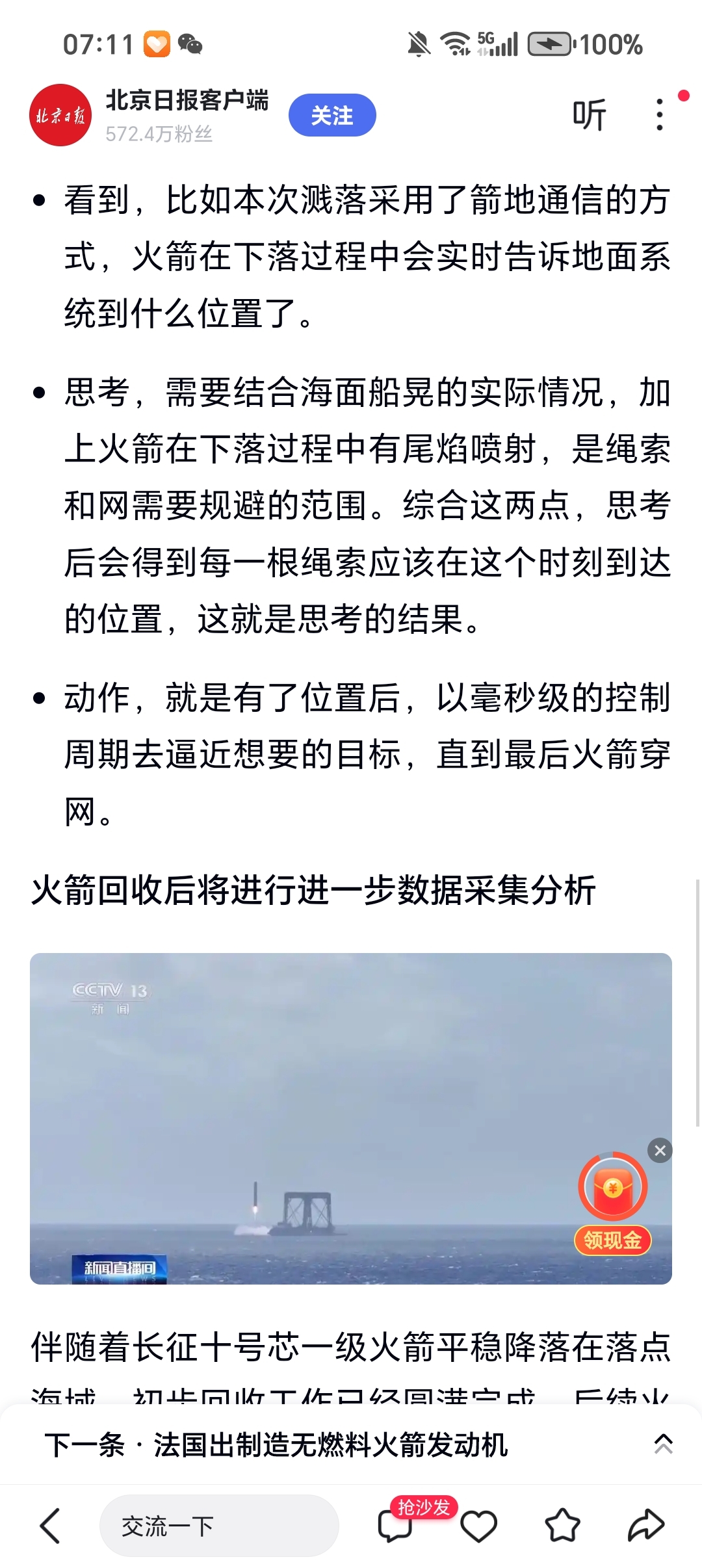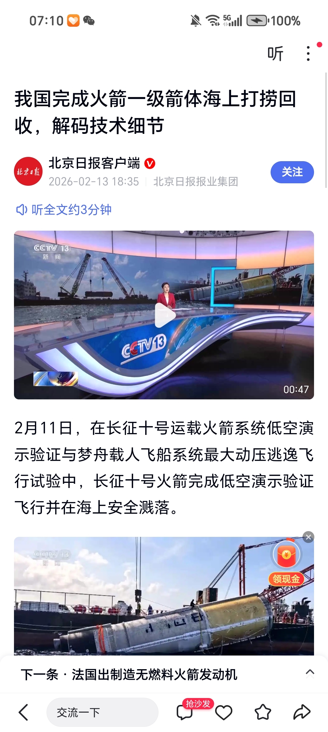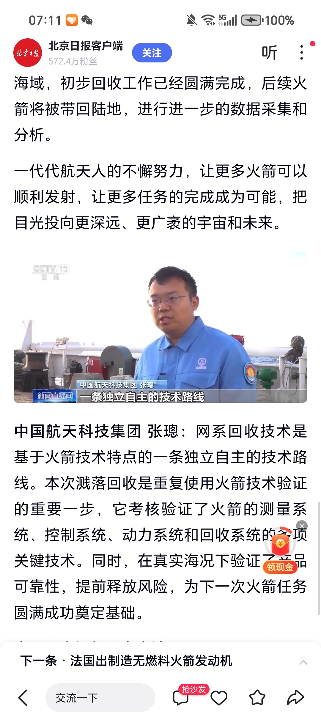 2月11号的海上溅落是为了获取网系回收真回收实数,为下一步真正网系回收改进网系参