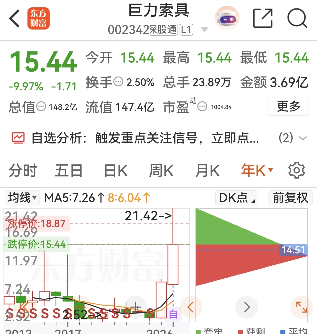 $巨力索具(SZ002342)$ 看看年线筹码峰,不错