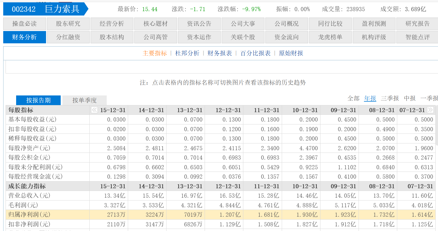 巨力索具业绩顶峰是它上市的2010年,之后一路下滑,很明显上市时的业绩是虚构的!