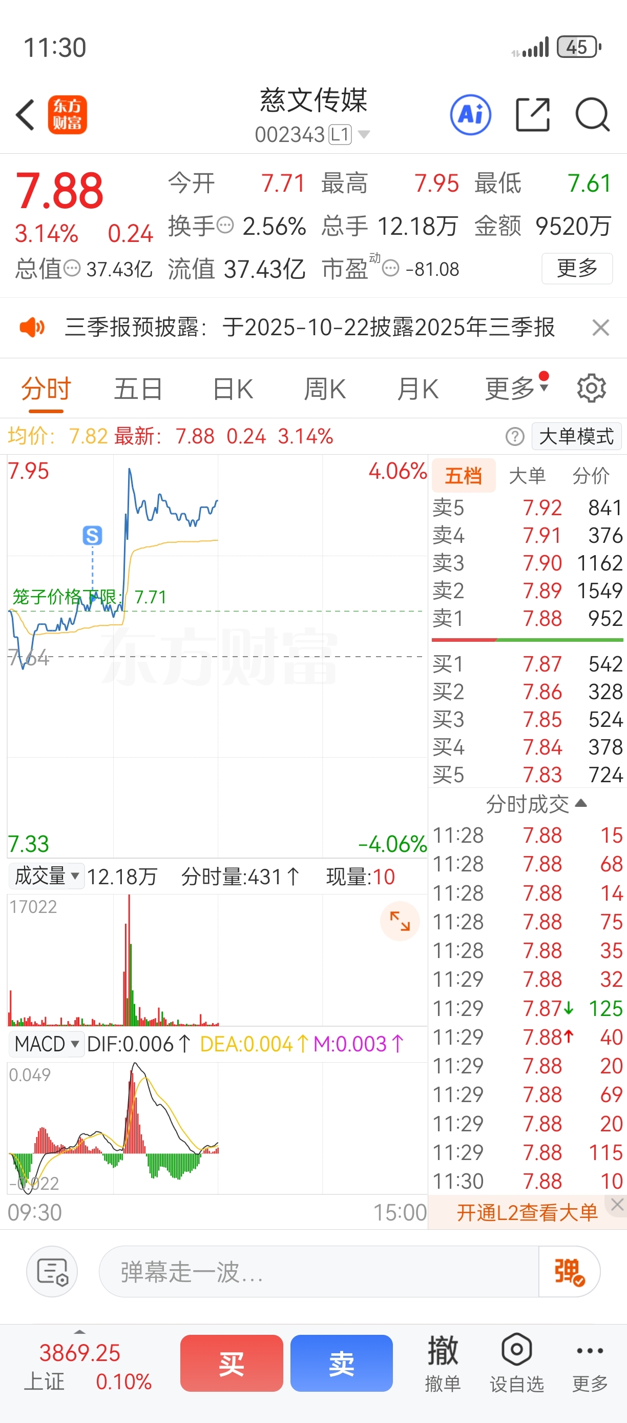 $慈文传媒(SZ002343)$ 这就是传说中的一卖就涨