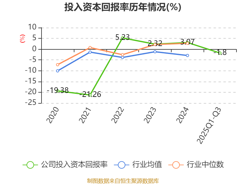 盈利能力方面, 2025年前三季度公司加权平均净资产收益率为-2.8%,同比下降3.97个百分点。公司2025年前三季度投入资本回报率为-1.8%,较上年同期下降2.85个百分点。