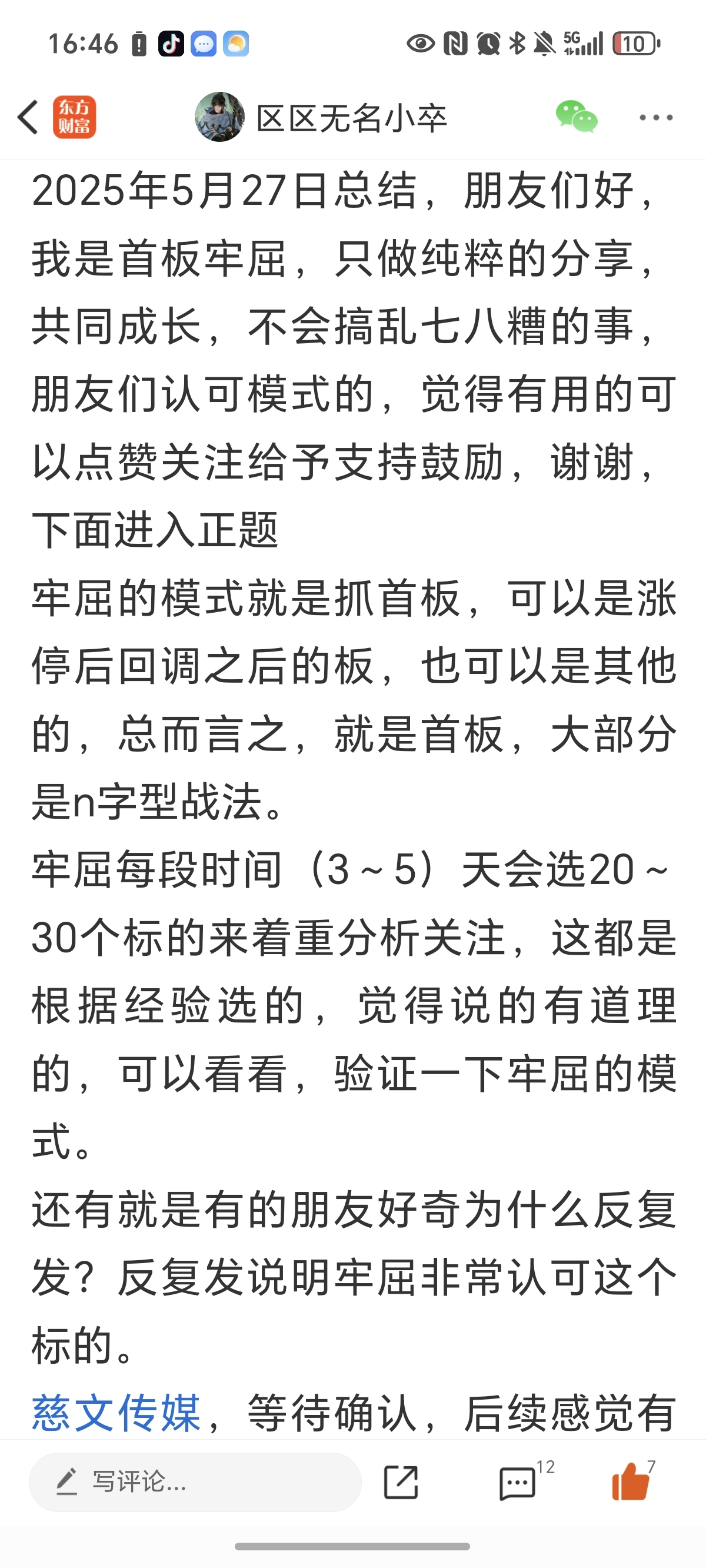 $慈文传媒(SZ002343)$ 忆苦思甜第三只票,当时还叫首板牢屈,五月底开始提醒,后面半个月也是将近二十个点,点赞加关注,持续分享
