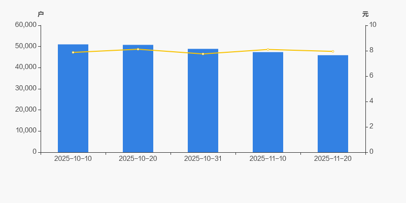 2025年10月10日至今,公司股东户数显著下降,区间跌幅为10.03%。2025年10月10日至2025年11月20日区间股价上涨1.02%。