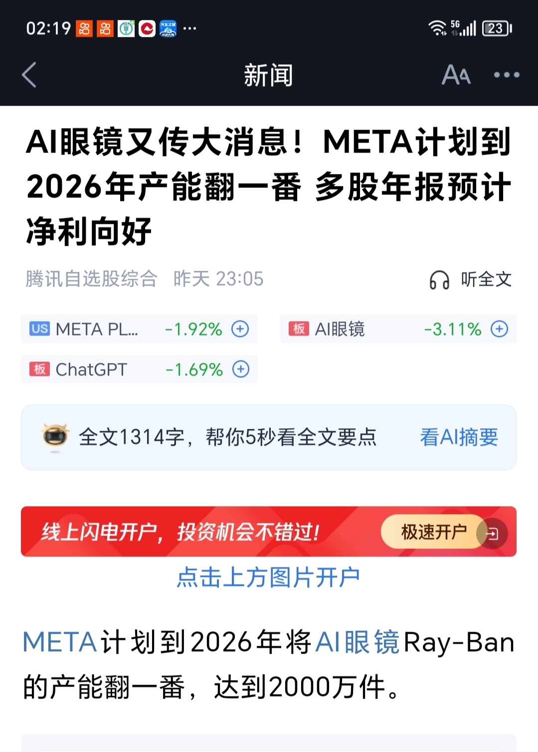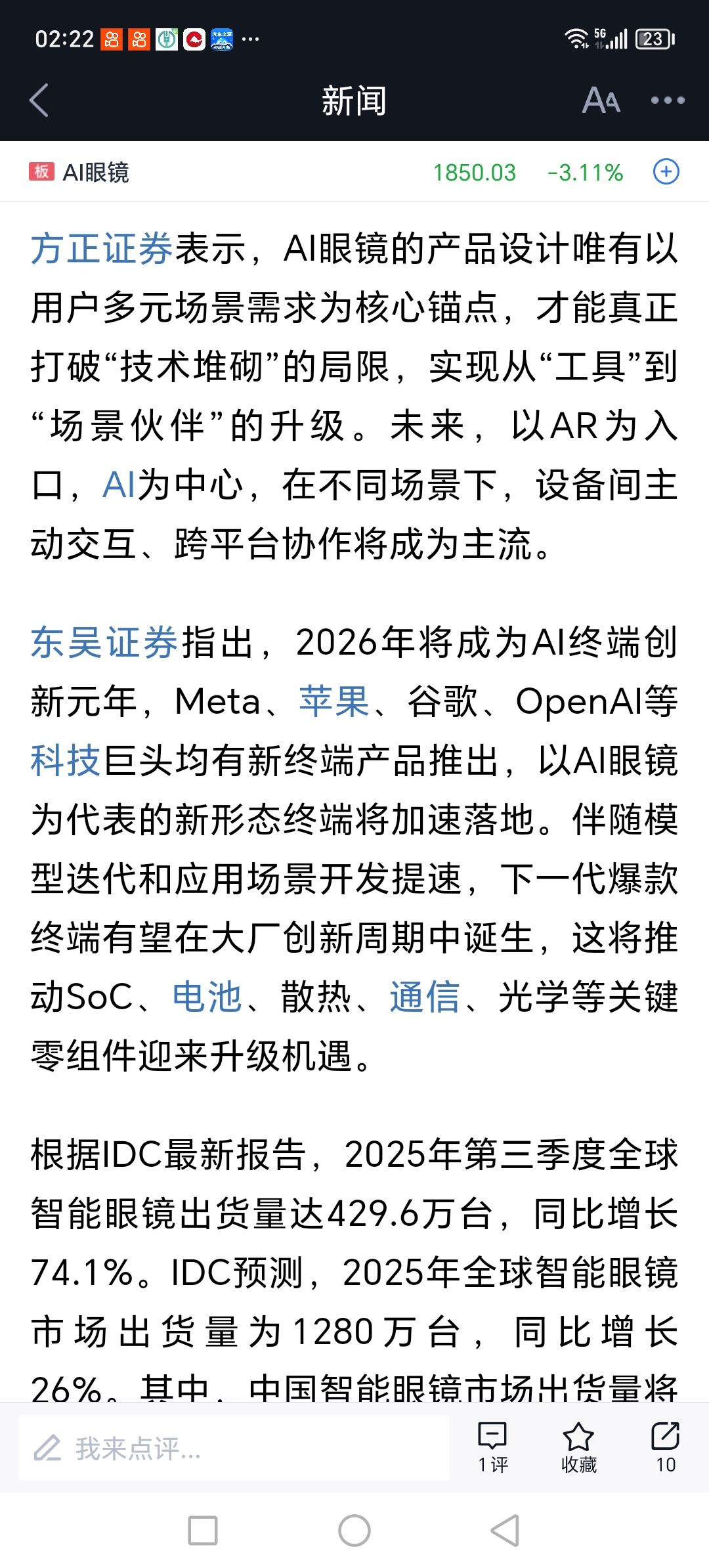战友们:深夜Al眼镜重榜利好突发消息来了