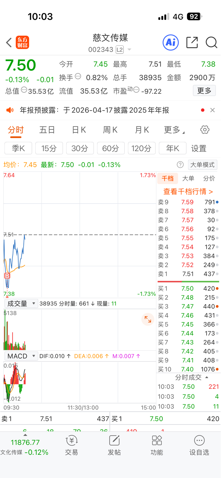 $慈文传媒(SZ002343)$ 抄底了