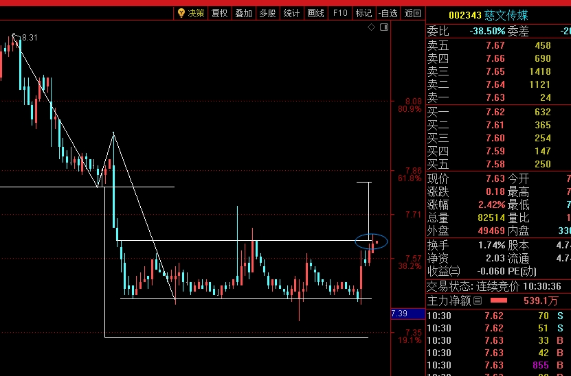 $慈文传媒(SZ002343)$ 7.63能突破嘛?确认突破可见6.8