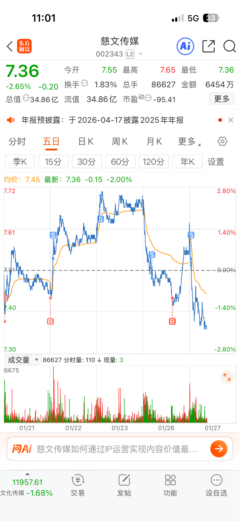 $慈文传媒(SZ002343)$ 我已经预判了主力的预判