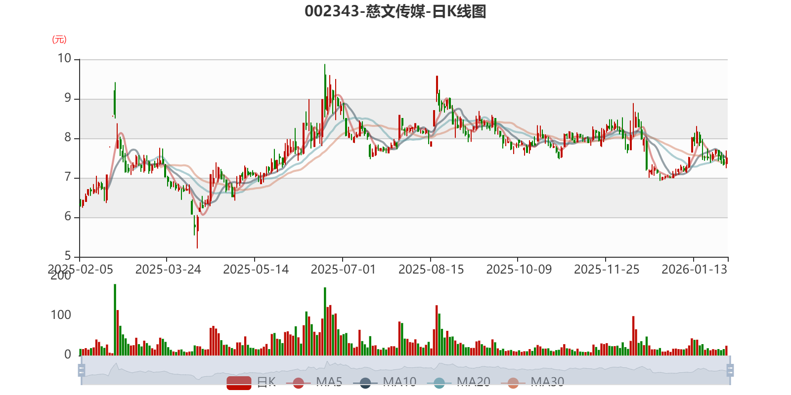 中证智能财讯慈文传媒(002343)1月29日晚间披露2025年度业绩预告,预计2025年归母净利润亏损1150万元至1750万元,上年同期盈利3034.78万元;扣非净利润亏损6000万元至8000万元,上年同期盈利1285.14万元;基本每股收益-0.02元/股至-0.04元/股。以最新收盘价计算,市净率(LF)约3.7倍,市销率(TTM)约7.02倍。