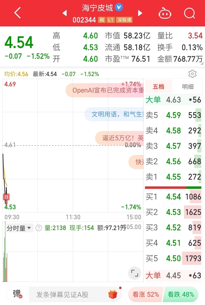 $海宁皮城(SZ002344)$ 抄到底了,没跑…