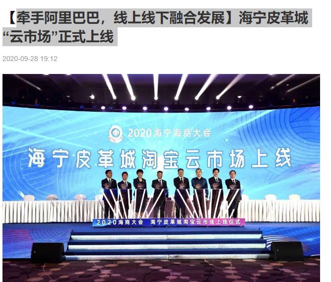 已牵手阿里巴巴,线上线下融合发展】海宁皮革城“云市场”正式上线