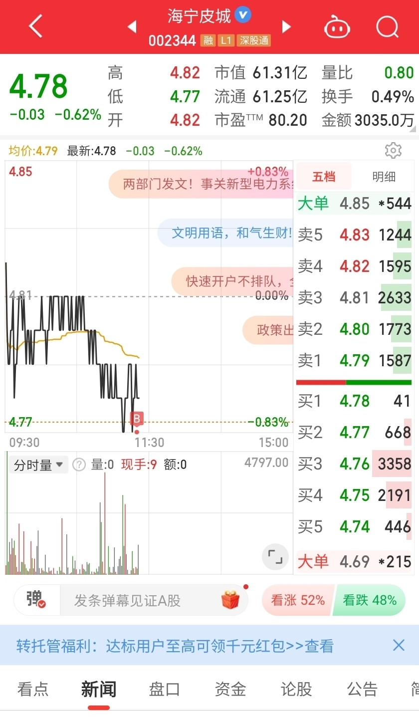 $海宁皮城(SZ002344)$ 涨不涨,咱买进再说