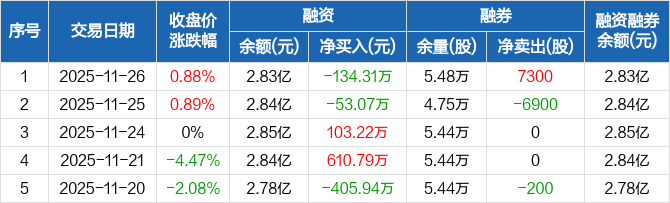 海宁皮城:融资净偿还134.31万元,融资余额2.83亿元(11-26)