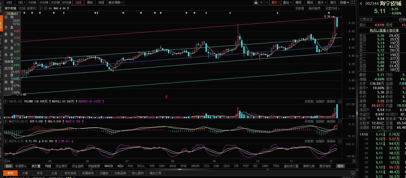 $海宁皮城(SZ002344)$ 下周一回踩五日线,撑不住,还是要等4块6附近
