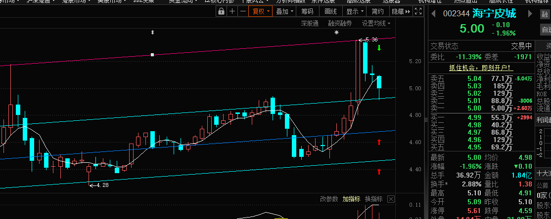 不破4.9就观望,破了就等4.7。反弹的时候,不突破5.36,回调就走