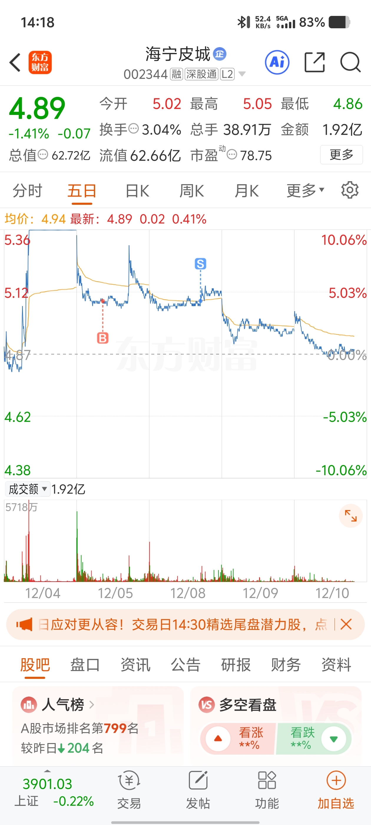 $海宁皮城(SZ002344)$ 不敢格局,被弄怕了