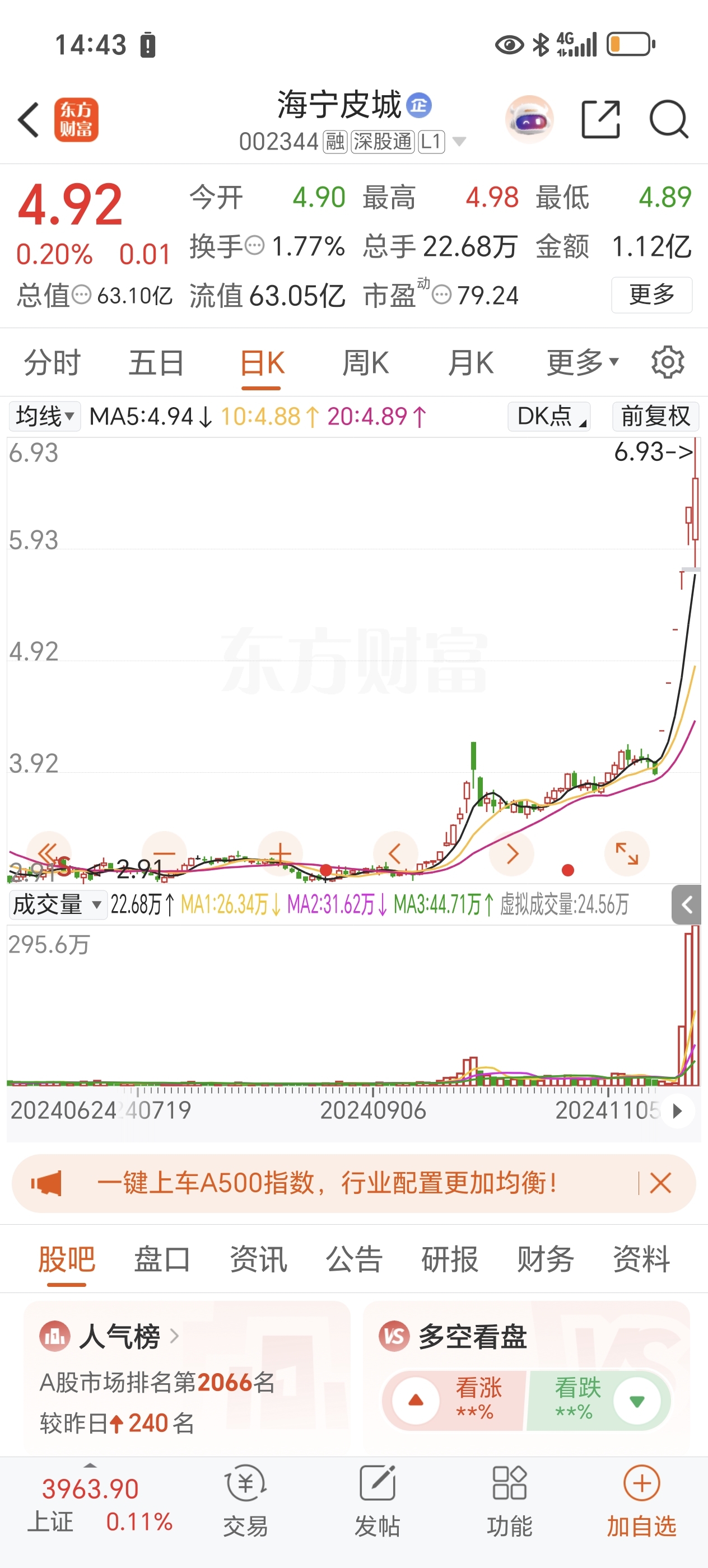 $海宁皮城(SZ002344)$ 这货可能还是走这个模式,要横盘几天在跳水挖坑,突然吃独食