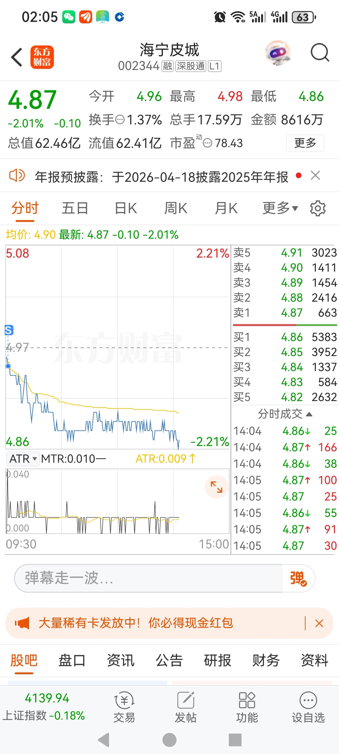 $海宁皮城(SZ002344)$ 先撤退退,4.71再来