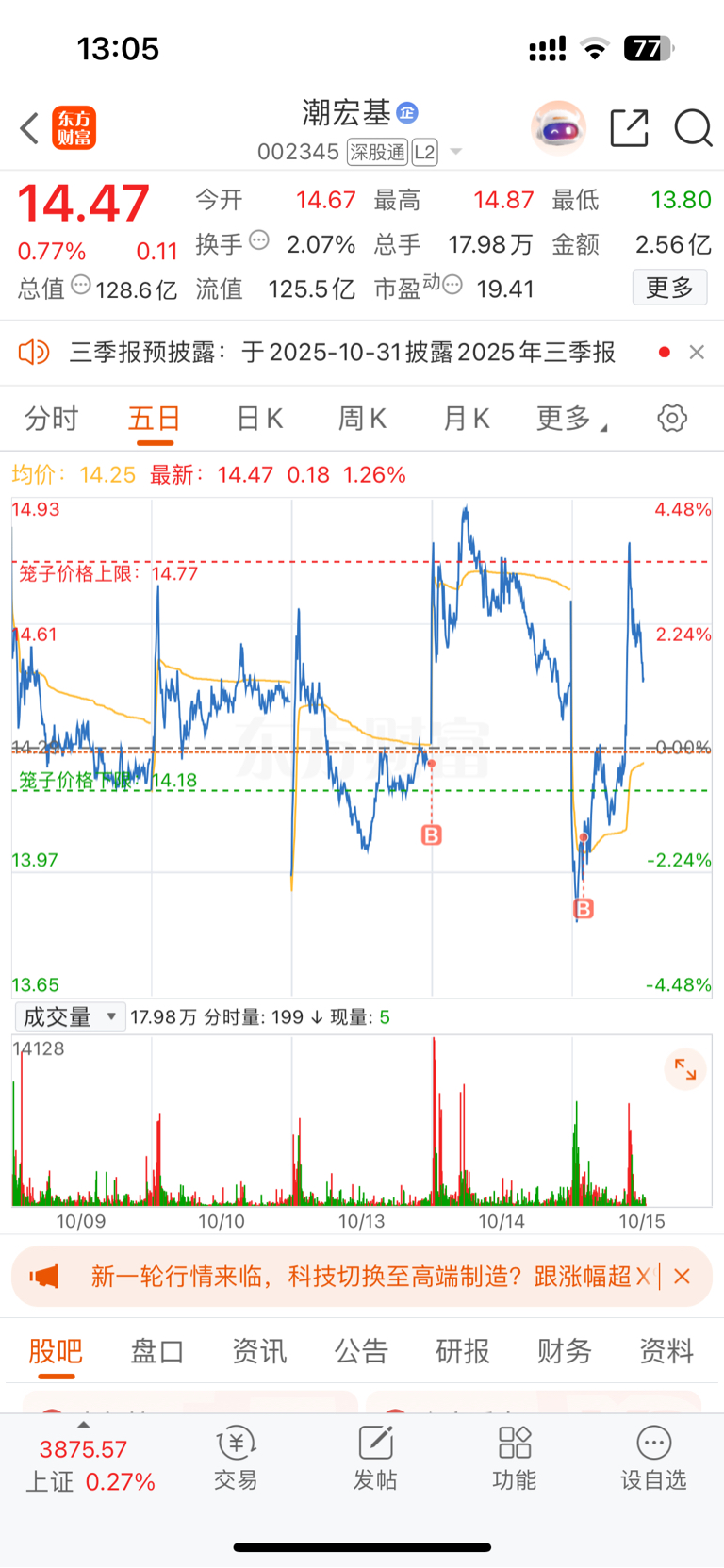 $潮宏基(SZ002345)$ 五日线天天同样的操作
