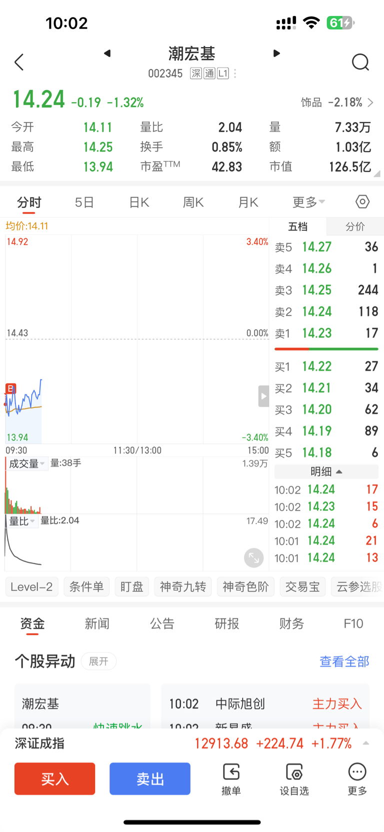 $潮宏基(SZ002345)$ 今天只加不减