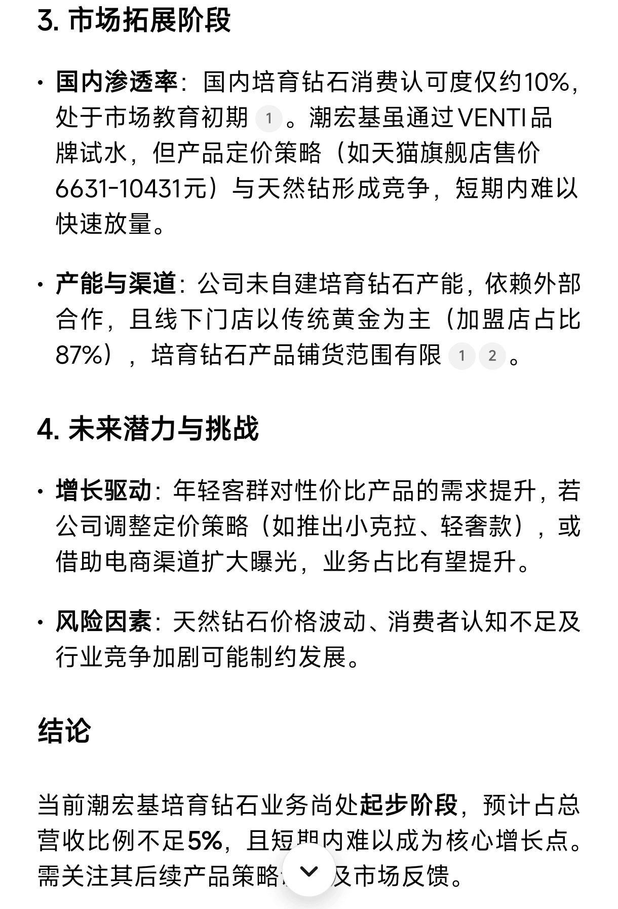 $潮宏基(SZ002345)$ 培育钻石业务量占比还不到5% 这这这属于误杀么?