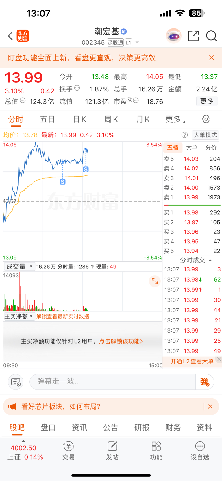 $潮宏基(SZ002345)$ 今天到此为止,收工,明天继续