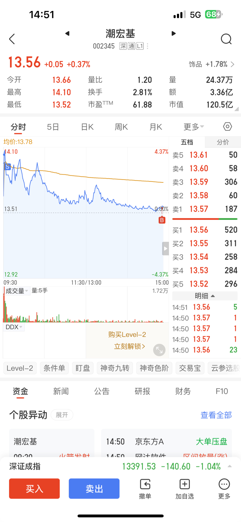 $潮宏基(SZ002345)$ 买一点,防止主力明天搞突袭,没筹码
