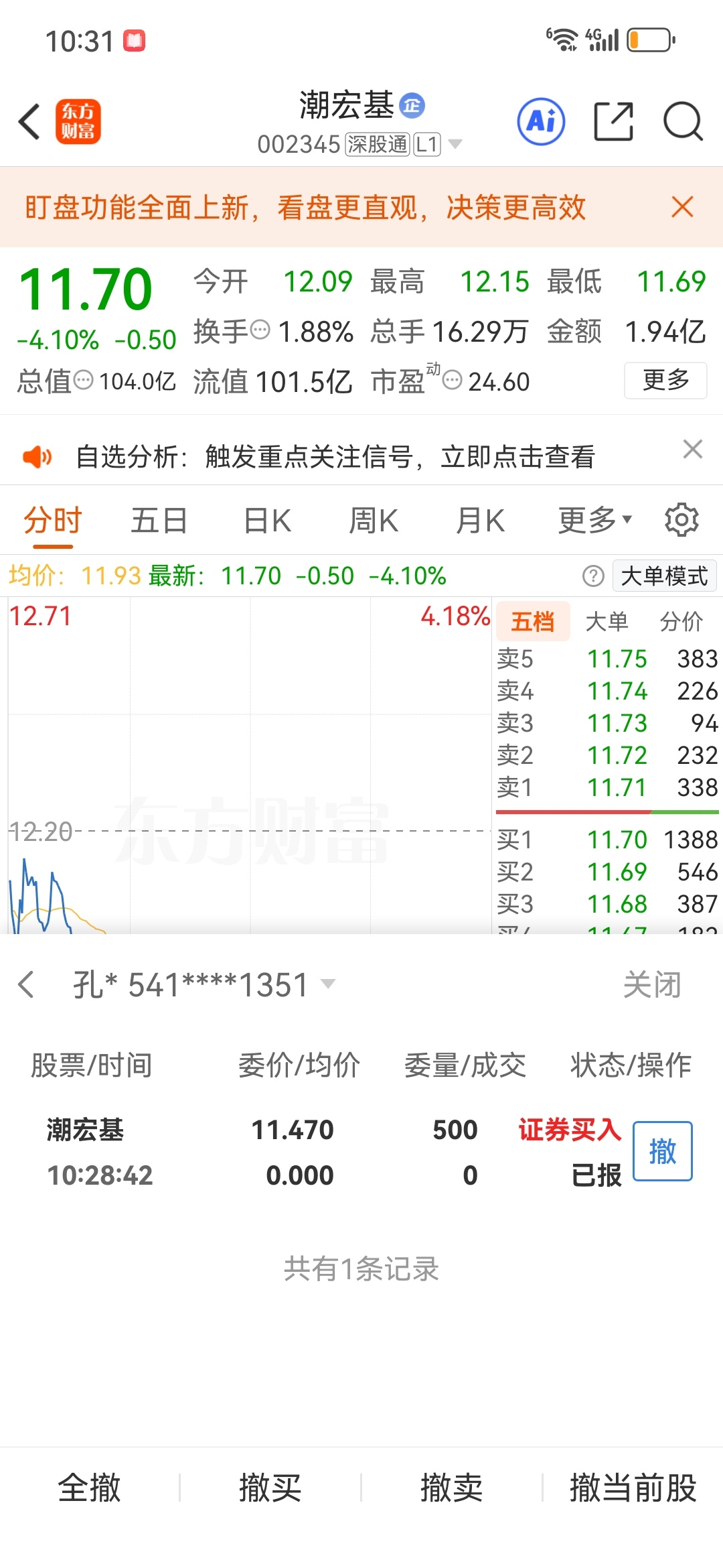 $潮宏基(SZ002345)$ 我买500股玩哈