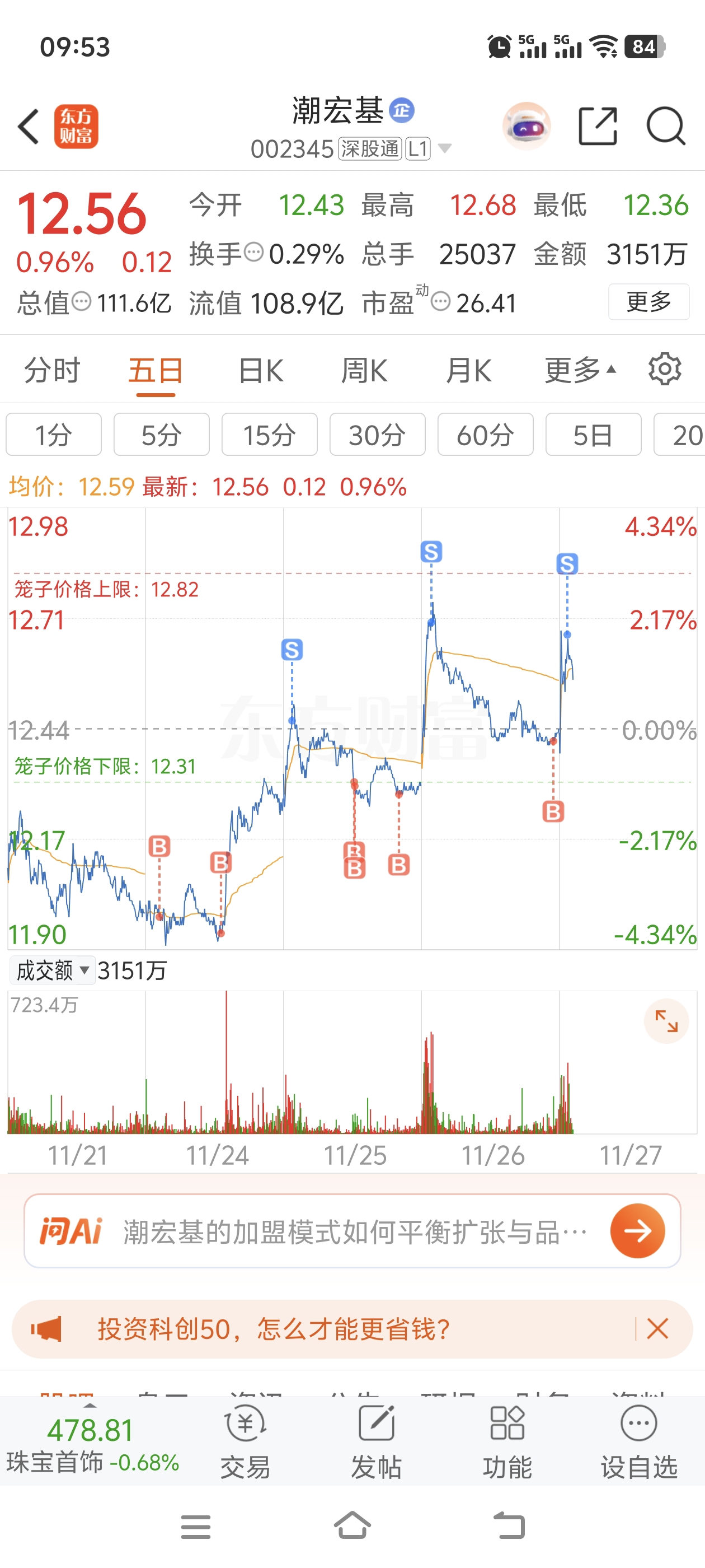 $潮宏基(SZ002345)$ CFO实盘战绩