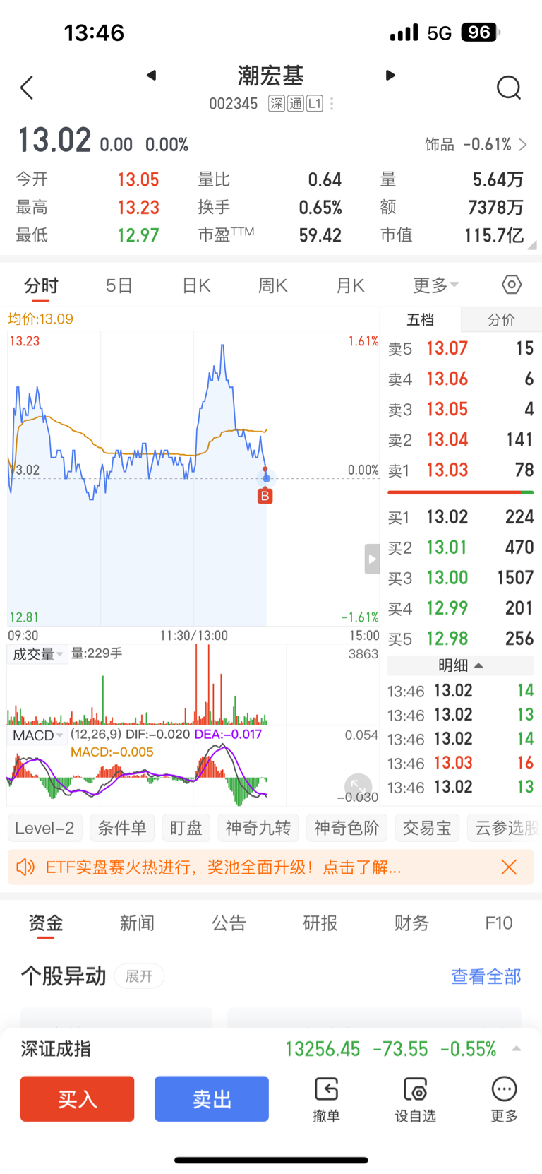 $潮宏基(SZ002345)$ 打个底仓占个位