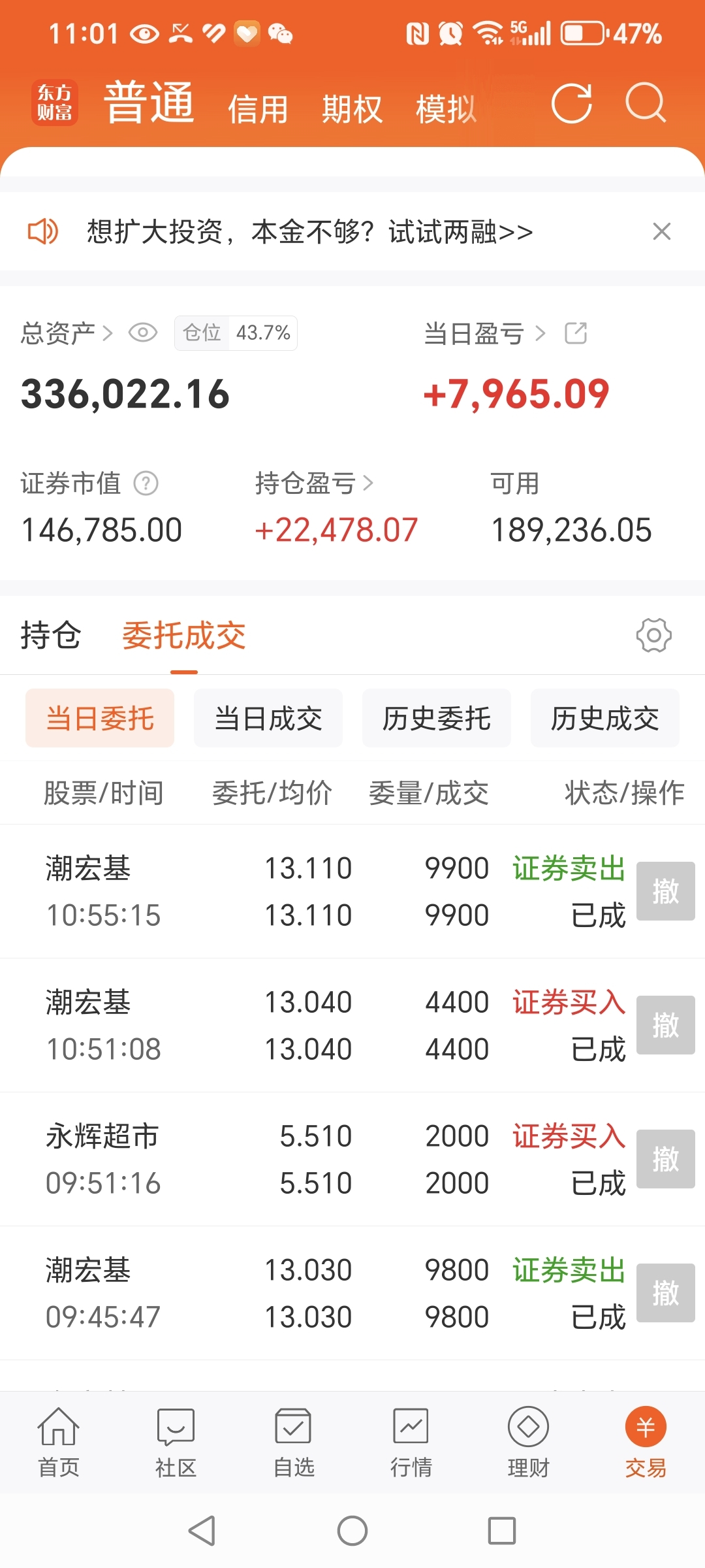 $潮宏基(SZ002345)$ 13.04卖出点成买入了