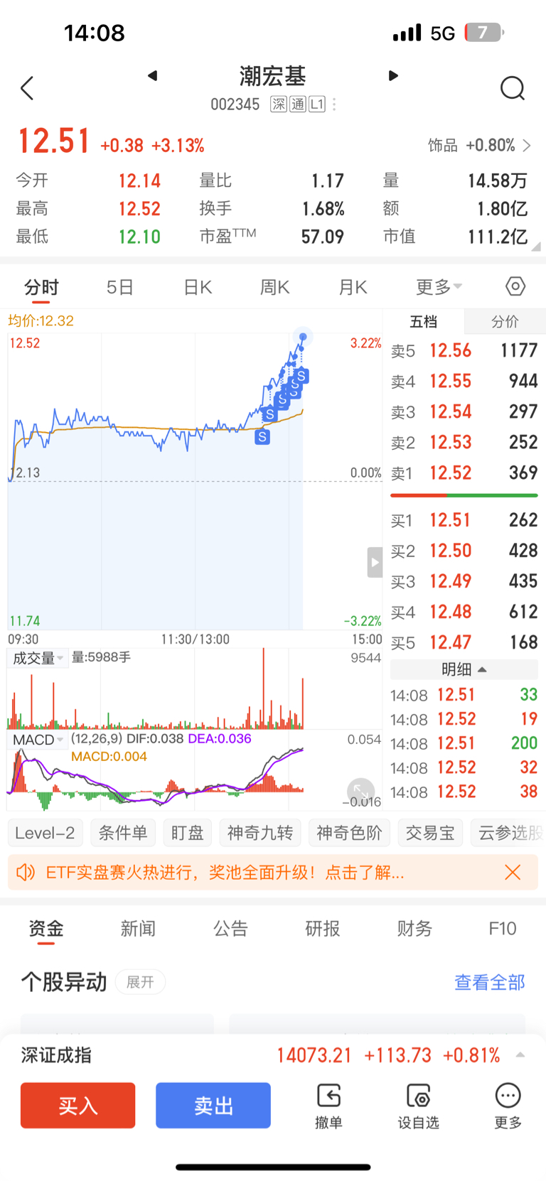 $潮宏基(SZ002345)$ 卖的也辛苦,赚了5000.留了点底舱,明天涨就清