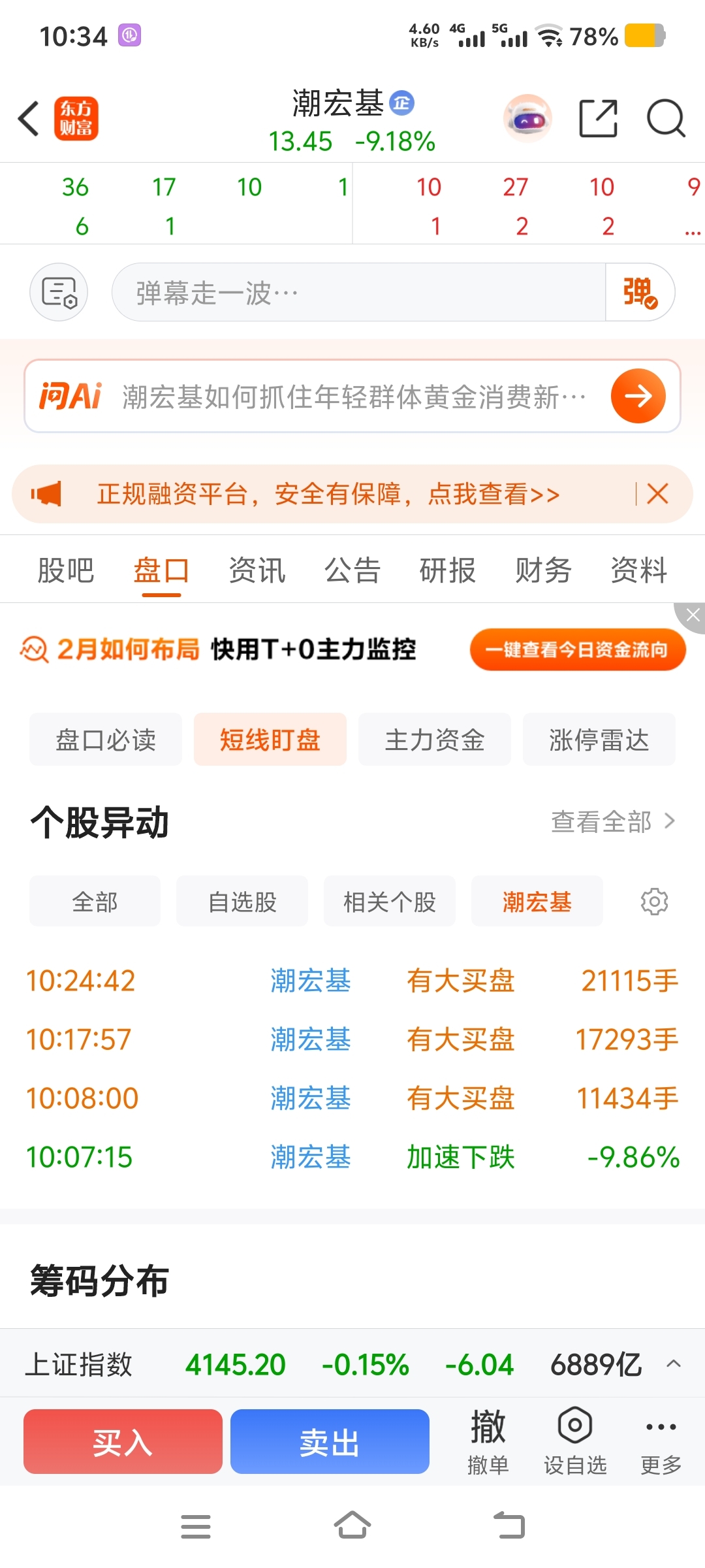 $潮宏基(SZ002345)$ 谁在疯狂低吸