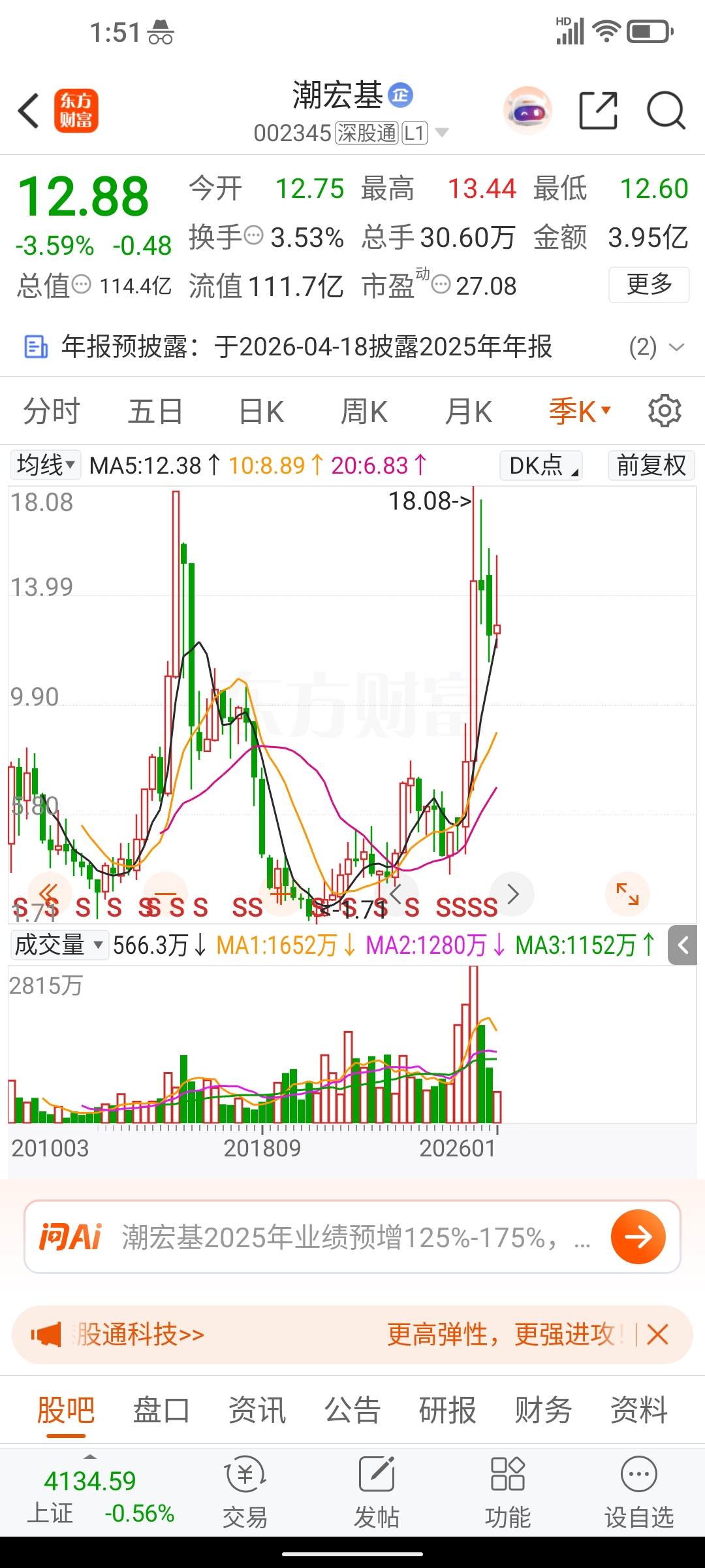 $潮宏基(SZ002345)$ 18.08魔咒的含金量还在上升