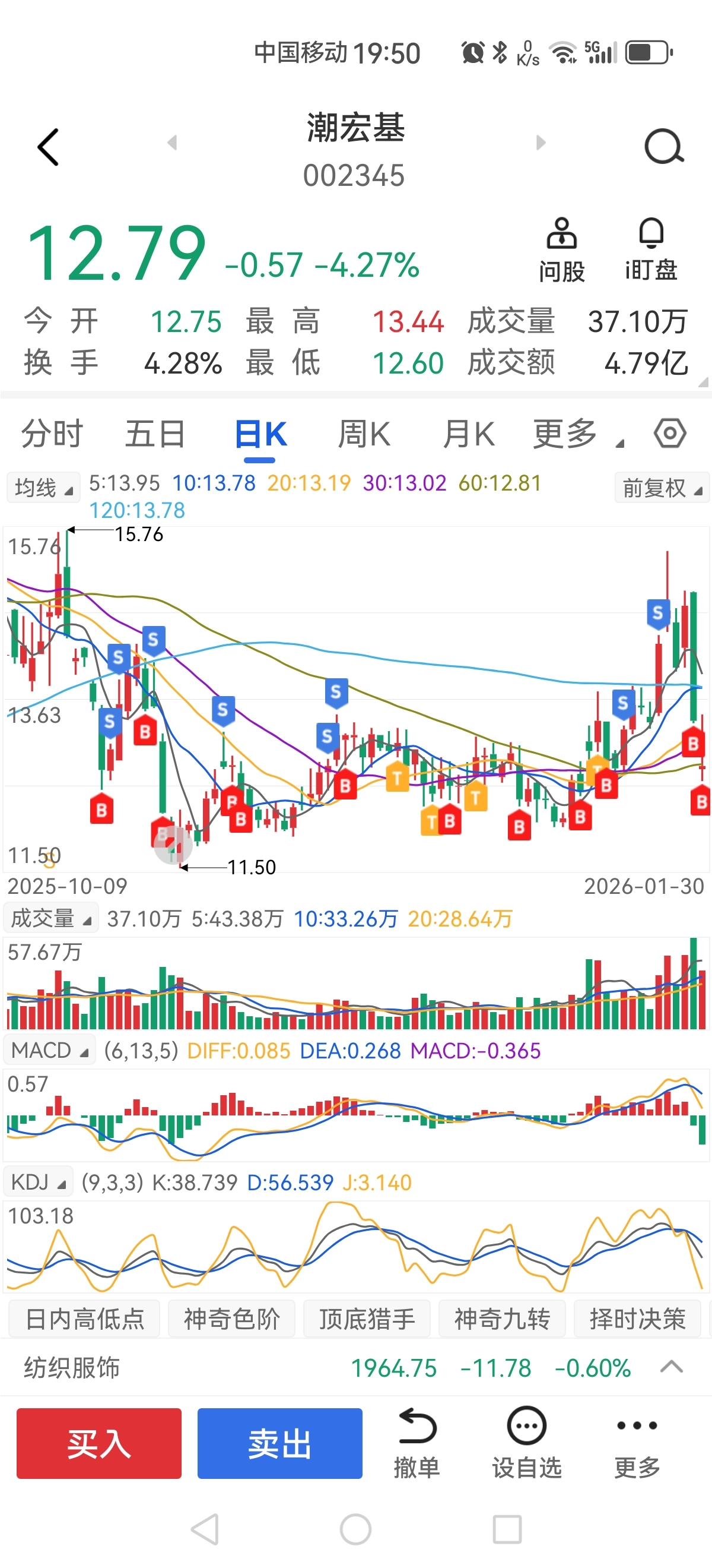 $潮宏基(SZ002345)$ 人弃我取,之前清仓的分批买回。