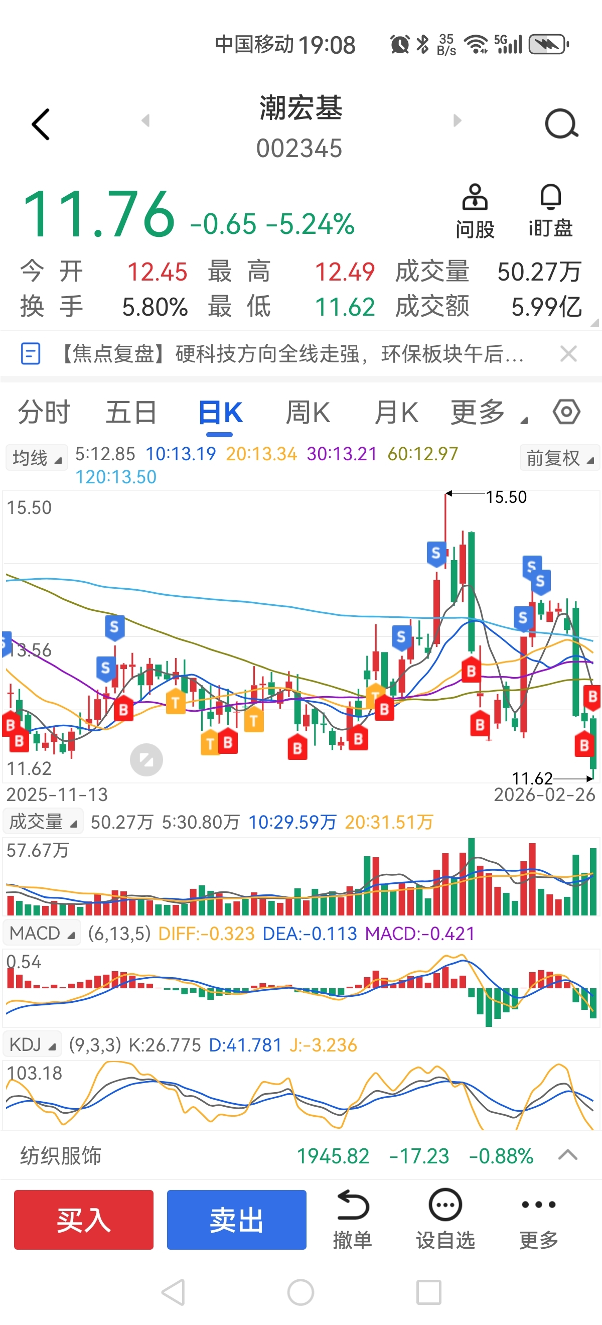 $潮宏基(SZ002345)$ 现价距我成本价还有5米远,我不怕砸,有本事继续跌,除非你暴雷,我认输。