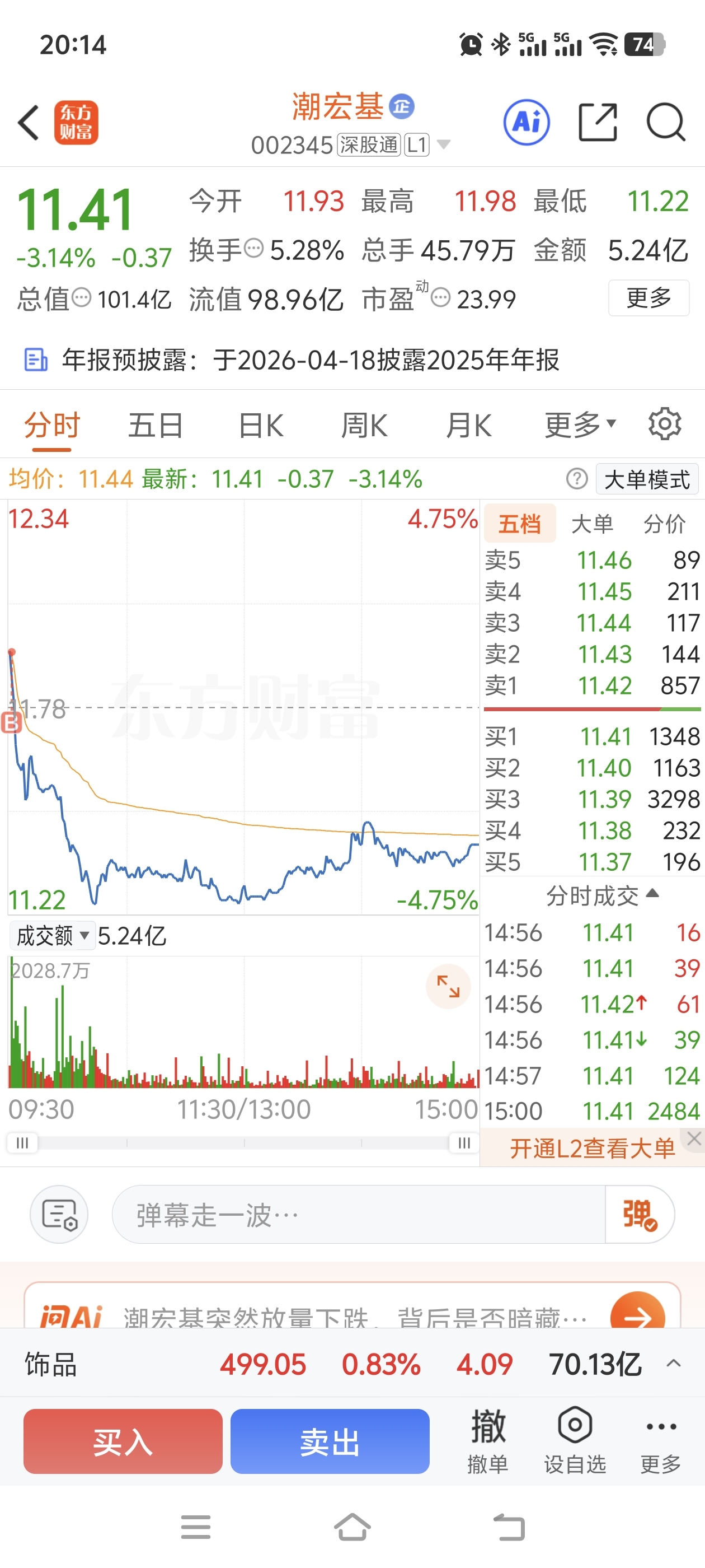 $潮宏基(SZ002345)$ 大家好,我是新来的韭菜,开盘买入 希望3年能回本