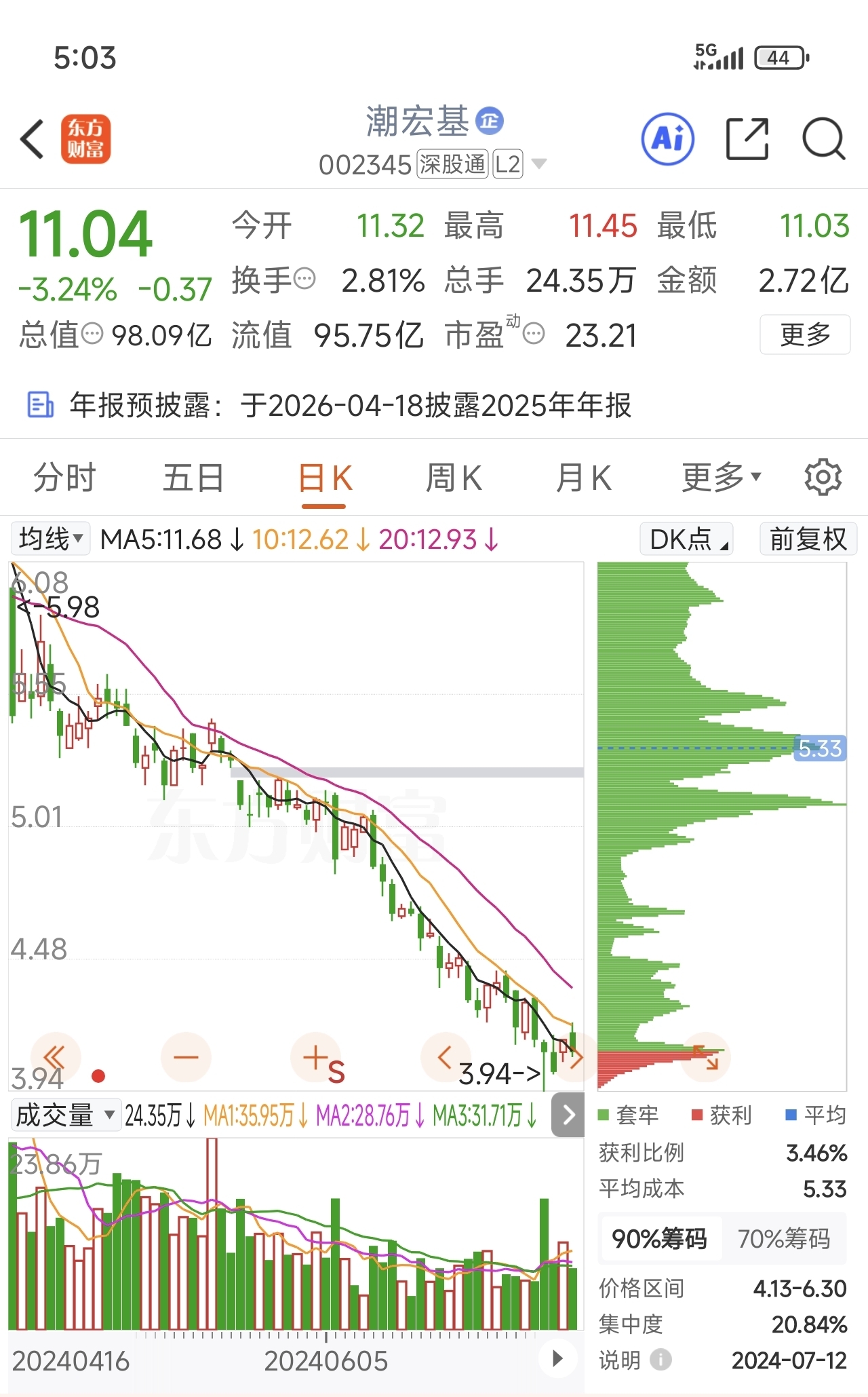 $潮宏基(SZ002345)$ 这个阴跌线看着吓人
