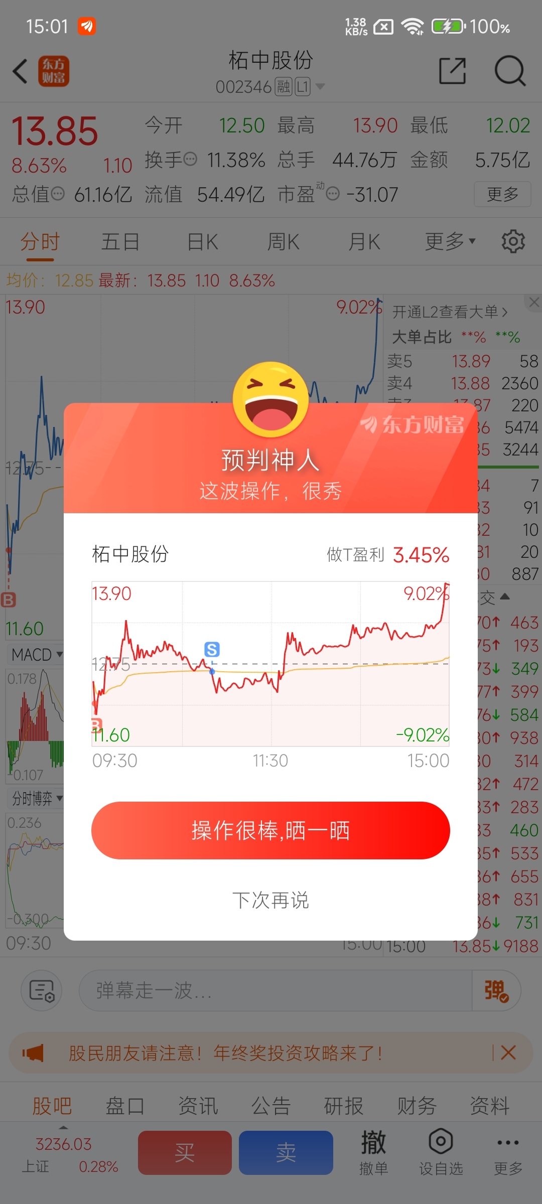 $柘中股份(SZ002346)$ 有点想笑,下来的时候犹豫半天没接