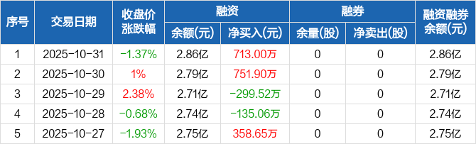 柘中股份:融资净买入713万元,融资余额2.86亿元(10-31)