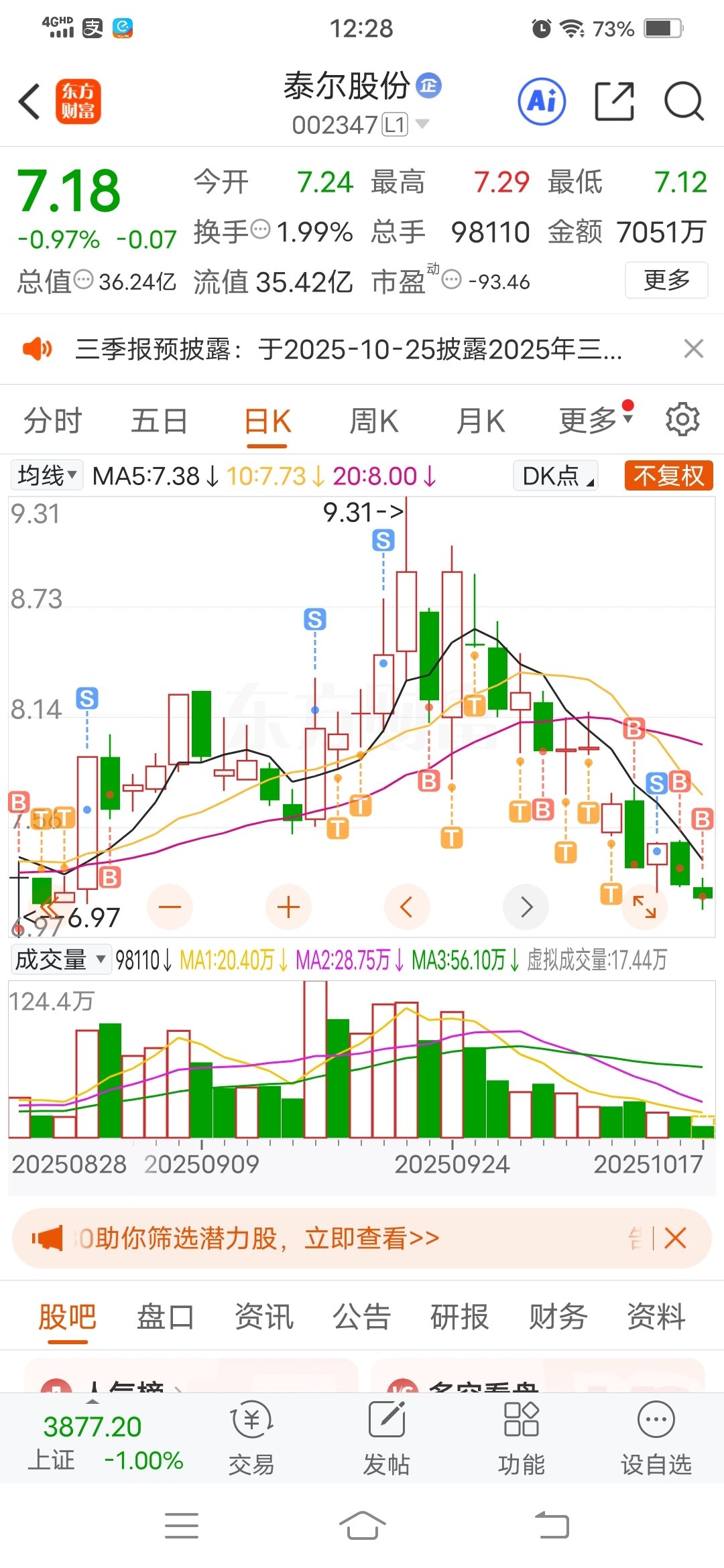 $泰尔股份(SZ002347)$ 头是不是很铁,就干上了,在跌在买。