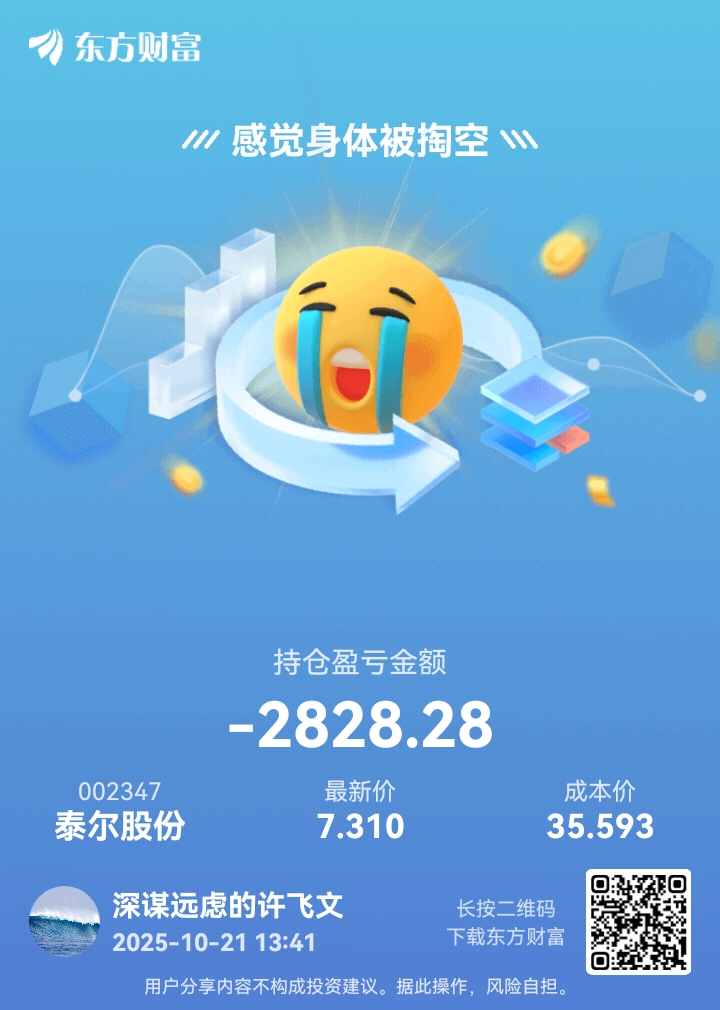 $泰尔股份(SZ002347)$ 持股20天,100股侦察,今天不进行操作,