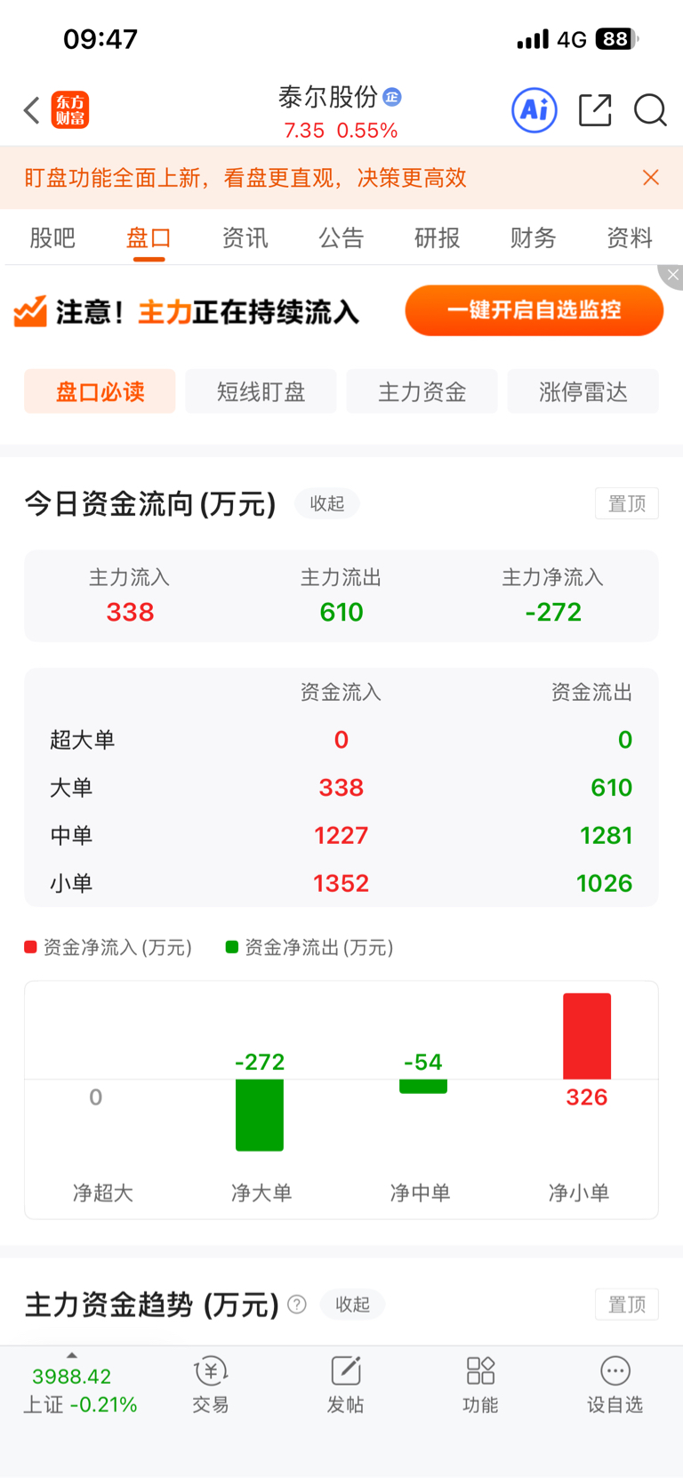 $泰尔股份(SZ002347)$ 都是小单进,哪里有主力。