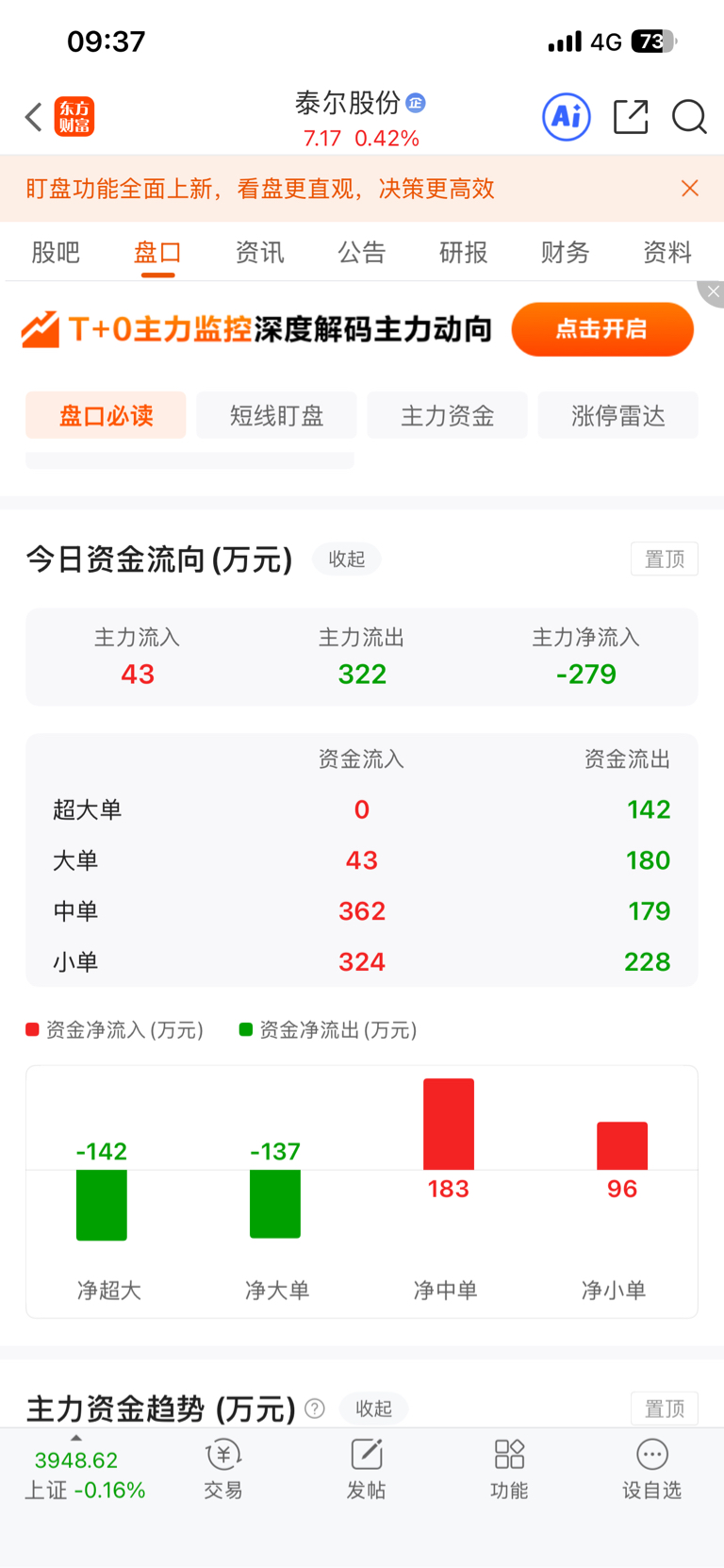 $泰尔股份(SZ002347)$ 主力都流出快300万了。