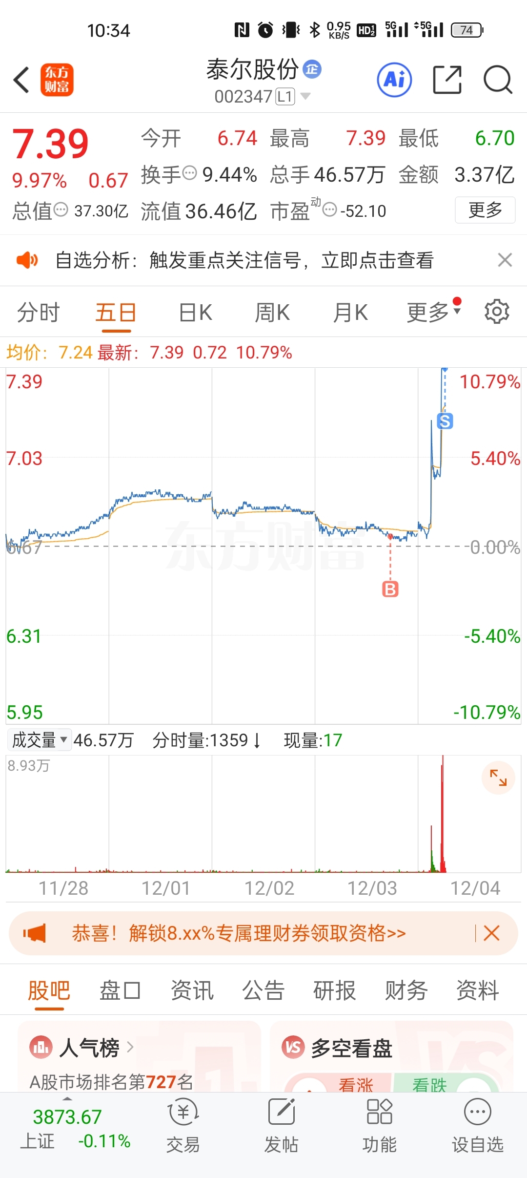$泰尔股份(SZ002347)$ 哥哥们,这波怎么样